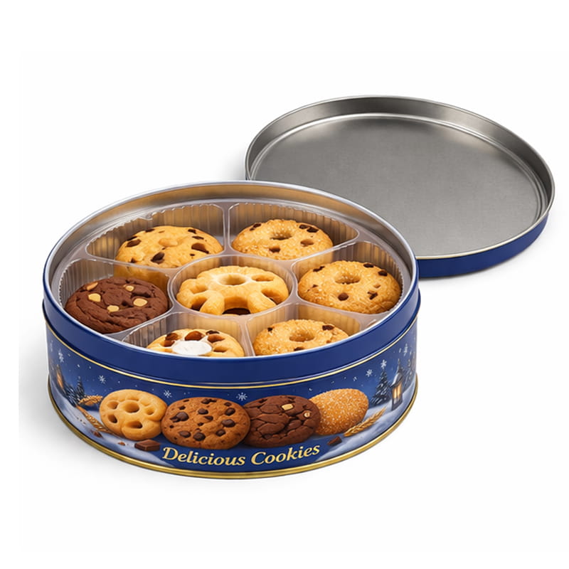 Unsere Auswahl an Verpackungsoptionen für Kekse ist so konzipiert, dass sie allen Arten von Verpackungsanforderungen gerecht wird.Mit unseren erfolgreichen Versiegelungstechniken stellen Sie sicher, dass Ihre Geschenke länger frisch und konserviert bleiben.Oreo, Keebler, Chips Ahoy und Pepperidge Farm sind berühmte Keksmarken, die uns die Treue halten.Seien Sie versichert, dass wir der Sicherheit Ihrer Geschenkverpackungen höchste Priorität einräumen, indem wir erstklassiges Weißblech in Lebensmittelqualität verwenden und so ein Höchstmaß an Qualität gewährleisten.Um erstklassige Qualität bei der Präsentation von Blechdosen zu gewährleisten, verwenden wir professionelle Pantone- und 4-Farben-Druckmaschinen.