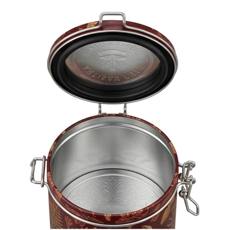 Opp Bag + Master CartonIndividuell bedruckter runder luftdichter Klappdeckel-Tee-Kaffee-Blechdosenbehälter aus Metall mit Riegelverschluss